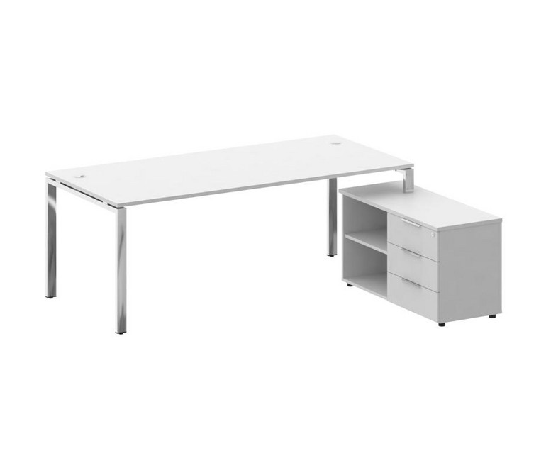 Metal System Direct Стол руковод. с тумбой БГ.СРТ-6.9 (R) Белый/Нержавеющая Сталь 2100*1720*750