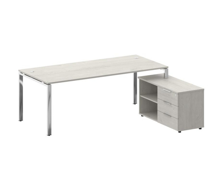 Metal System Direct Стол руковод. с тумбой БГ.СРТ-6.9 (R) Дуб Наварра/Нержавеющая Сталь 2100*1720*75