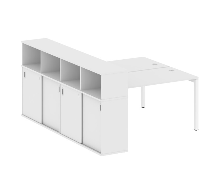 Metal System Quattro Рабочая станция с шкафом-купе на П-образном м/к 50БП.РС-СШК-4.3 Т Белый/Металл