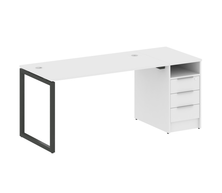 Metal System Quattro Рабочая станция с тумбой на О-образном м/к 40БО.РС-СТП-1.3 Белый/Металл Антраци