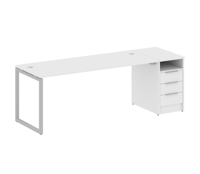 Metal System Quattro Рабочая станция с тумбой на О-образном м/к 40БО.РС-СТП-1.5 Белый/Металл Серый 2
