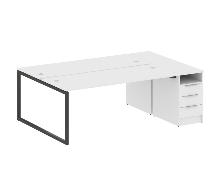 Metal System Quattro Рабочая станция с тумбой на О-образном м/к 40БО.РС-СТП-2.5 Белый/Металл Антраци