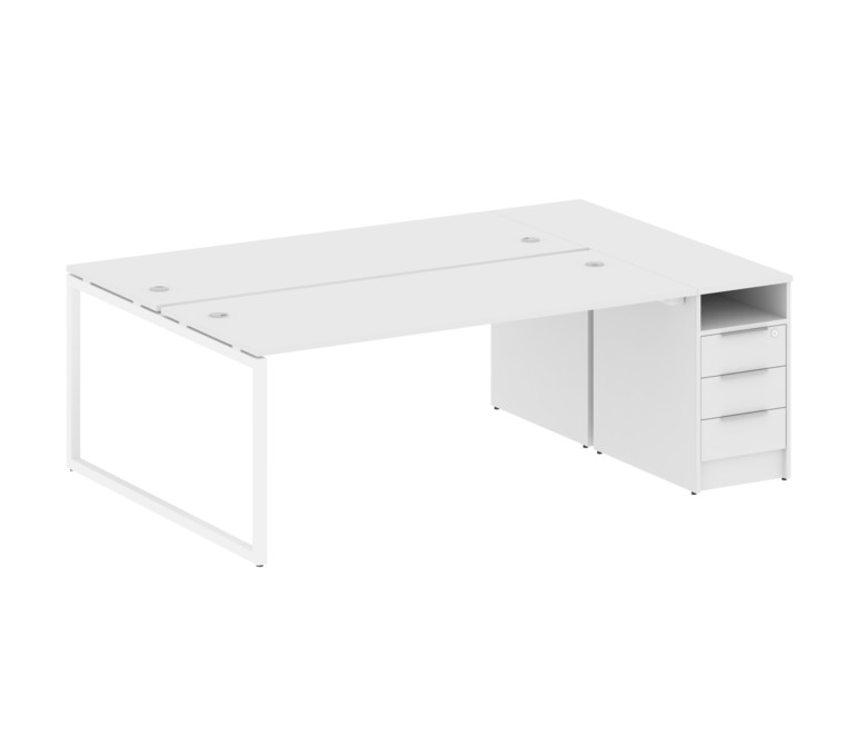 Metal System Quattro Рабочая станция с тумбой на О-образном м/к 40БО.РС-СТП-2.5 Белый/Металл Белый 2