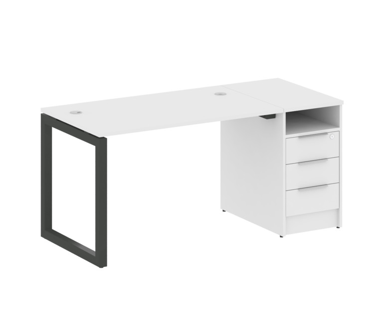 Metal System Quattro Рабочая станция с тумбой на О-образном м/к 50БО.РС-СТП-1.2 Белый/Металл Антраци