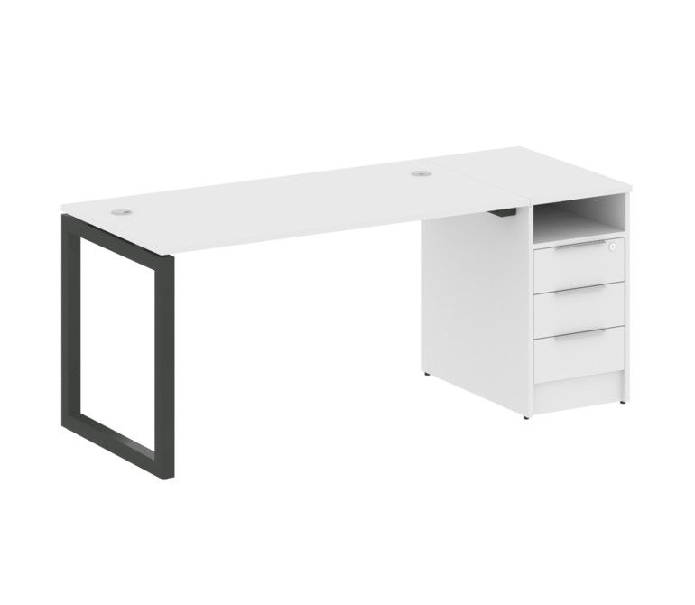 Metal System Quattro Рабочая станция с тумбой на О-образном м/к 50БО.РС-СТП-1.3 Белый/Металл Антраци