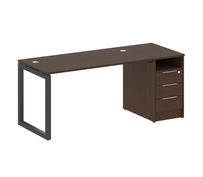 Metal System Quattro Рабочая станция с тумбой на О-образном м/к 50БО.РС-СТП-1.3 Венге Цаво/Металл Ан