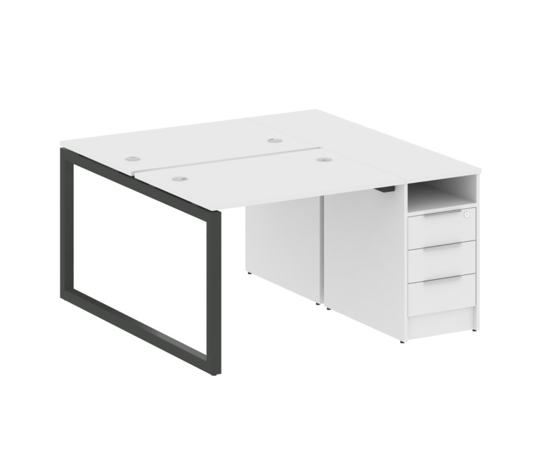 Metal System Quattro Рабочая станция с тумбой на О-образном м/к 50БО.РС-СТП-2.1 Белый/Металл Антраци