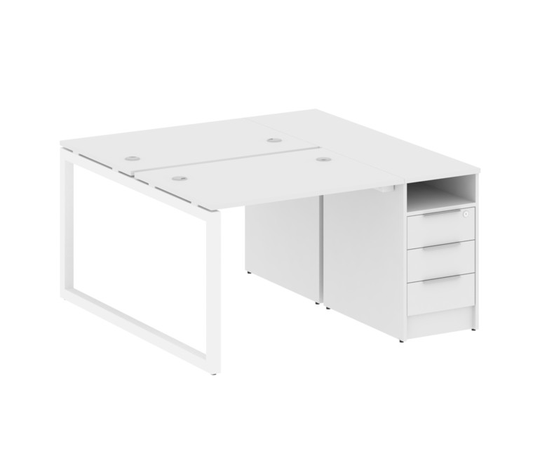 Metal System Quattro Рабочая станция с тумбой на О-образном м/к 50БО.РС-СТП-2.1 Белый/Металл Белый 1