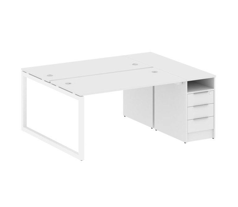 Metal System Quattro Рабочая станция с тумбой на О-образном м/к 50БО.РС-СТП-2.3 Белый/Металл Белый 1