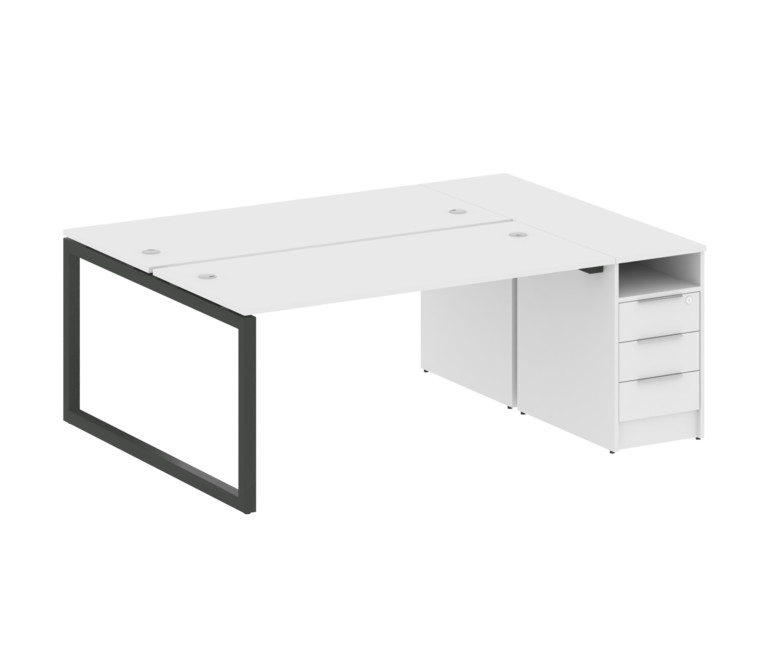 Metal System Quattro Рабочая станция с тумбой на О-образном м/к 50БО.РС-СТП-2.4 Белый/Металл Антраци