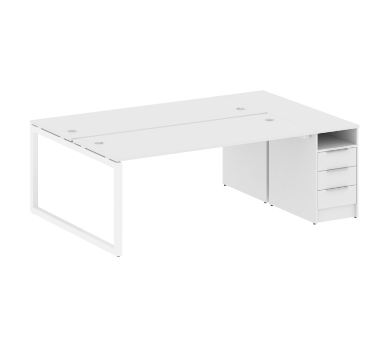 Metal System Quattro Рабочая станция с тумбой на О-образном м/к 50БО.РС-СТП-2.5 Белый/Металл Белый 2