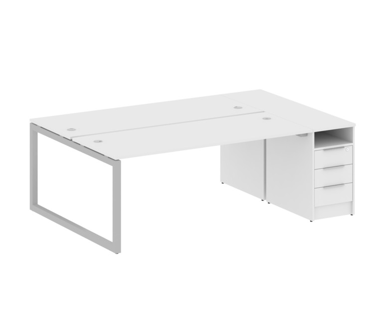 Metal System Quattro Рабочая станция с тумбой на О-образном м/к 50БО.РС-СТП-2.5 Белый/Металл Серый 2