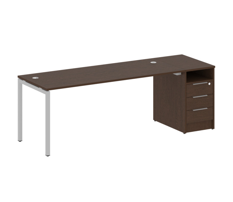 Metal System Quattro Рабочая станция с тумбой на П-образном м/к 40БП.РС-СТП-1.5 Венге Цаво/Металл Се