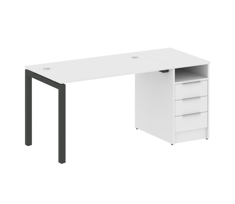 Metal System Quattro Рабочая станция с тумбой на П-образном м/к 50БП.РС-СТП-1.2 Белый/Металл Антраци