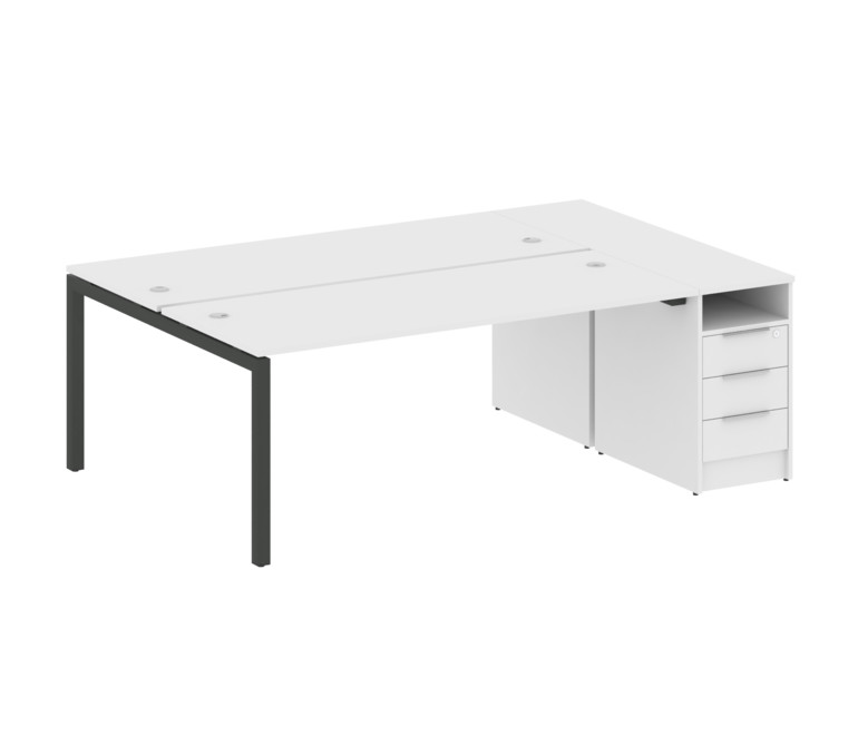 Metal System Quattro Рабочая станция с тумбой на П-образном м/к 50БП.РС-СТП-2.5 Белый/Металл Антраци