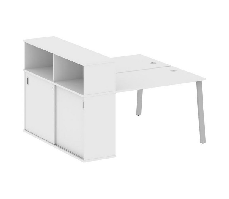 Metal System Рабочая станция с шкафом-купе на А-образном м/к БА.РС-СШК-2.2 Т Белый/Металл Серый 1610