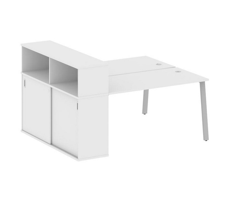 Metal System Рабочая станция с шкафом-купе на А-образном м/к БА.РС-СШК-2.3 Т Белый/Металл Серый 1810