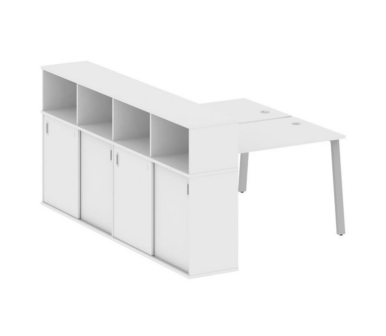 Metal System Рабочая станция с шкафом-купе на А-образном м/к БА.РС-СШК-4.2 Т Белый/Металл Серый 1610