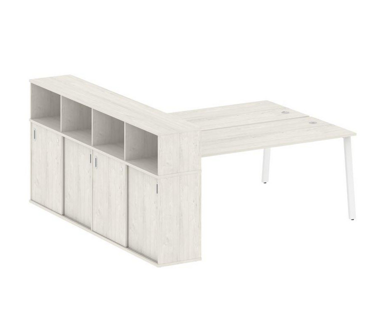 Metal System Рабочая станция с шкафом-купе на А-образном м/к БА.РС-СШК-4.5 Т Дуб Наварра/Металл Белы