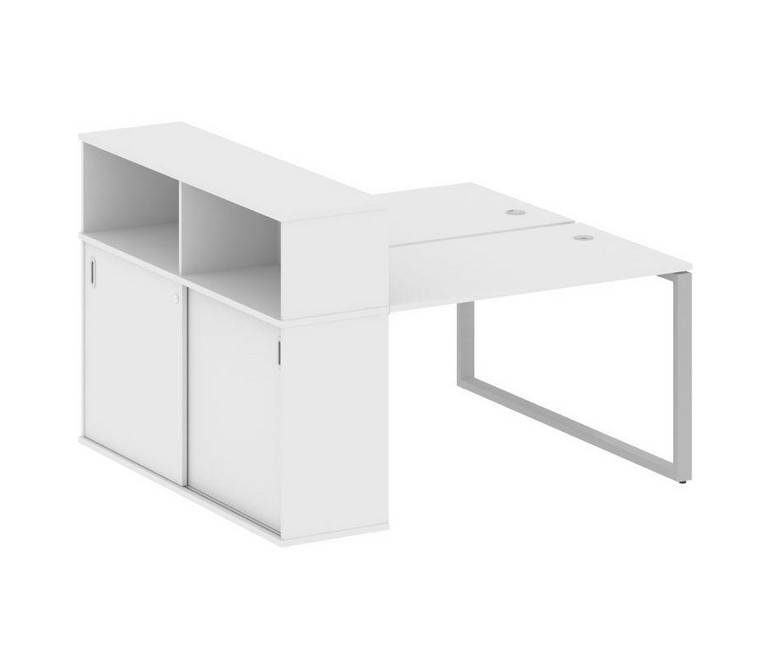 Metal System Рабочая станция с шкафом-купе на О-образном м/к БО.РС-СШК-2.2 Т Белый/Металл Серый 1610