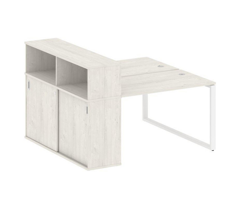 Metal System Рабочая станция с шкафом-купе на О-образном м/к БО.РС-СШК-2.2 Т Дуб Наварра/Металл Белы