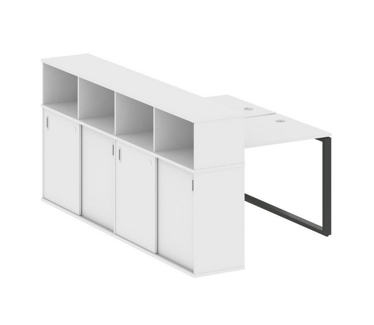 Metal System Рабочая станция с шкафом-купе на О-образном м/к БО.РС-СШК-4.1 Т Белый/Металл Антрацит 1