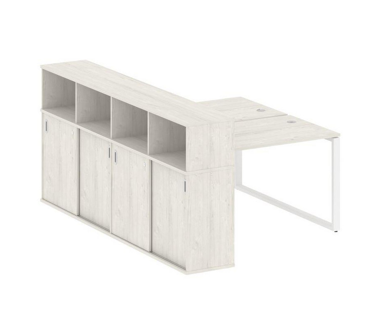 Metal System Рабочая станция с шкафом-купе на О-образном м/к БО.РС-СШК-4.2 Т Дуб Наварра/Металл Белы