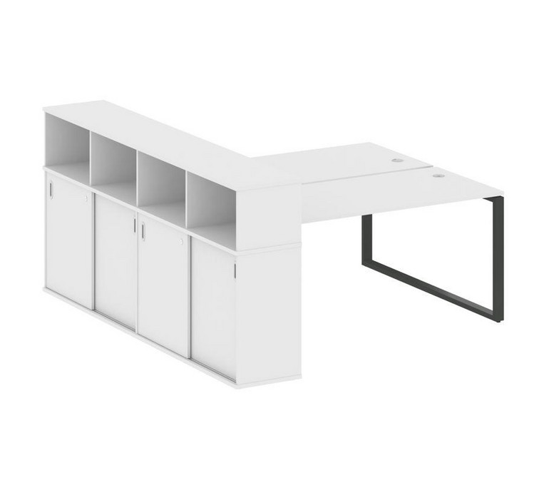 Metal System Рабочая станция с шкафом-купе на О-образном м/к БО.РС-СШК-4.4 Т Белый/Металл Антрацит 2