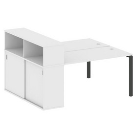 Metal System Рабочая станция с шкафом-купе на П-образном м/к БП.РС-СШК-1.1 Т Дуб Наварра/Металл Белы