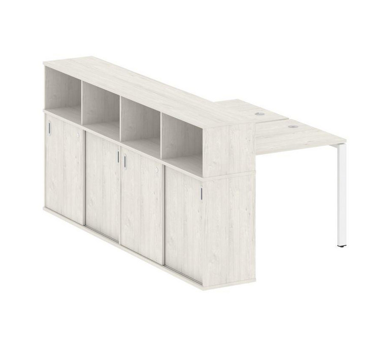 Metal System Рабочая станция с шкафом-купе на П-образном м/к БП.РС-СШК-4.1 Т Дуб Наварра/Металл Белы