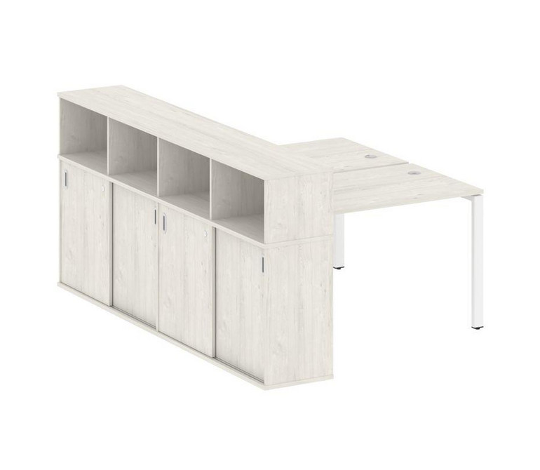 Metal System Рабочая станция с шкафом-купе на П-образном м/к БП.РС-СШК-4.2 Т Дуб Наварра/Металл Белы