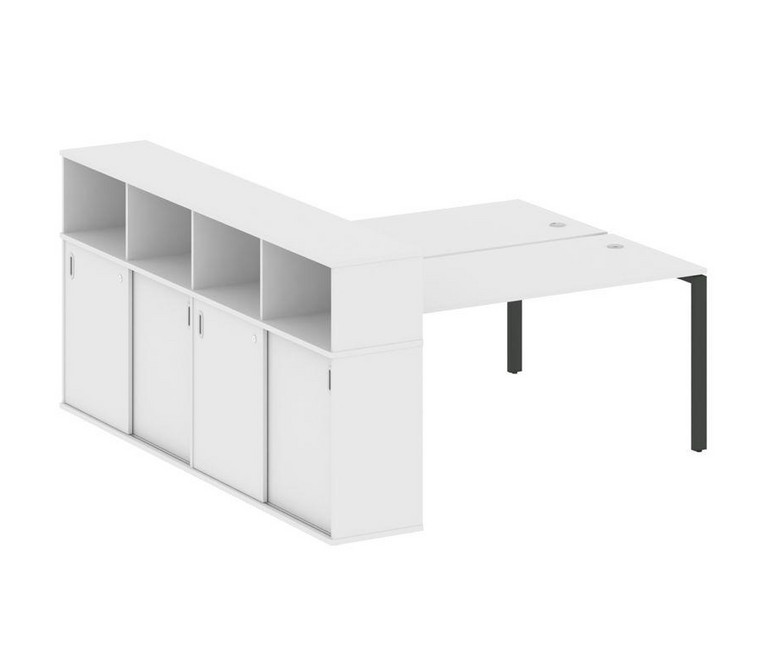 Metal System Рабочая станция с шкафом-купе на П-образном м/к БП.РС-СШК-4.4 Т Белый/Металл Антрацит 2