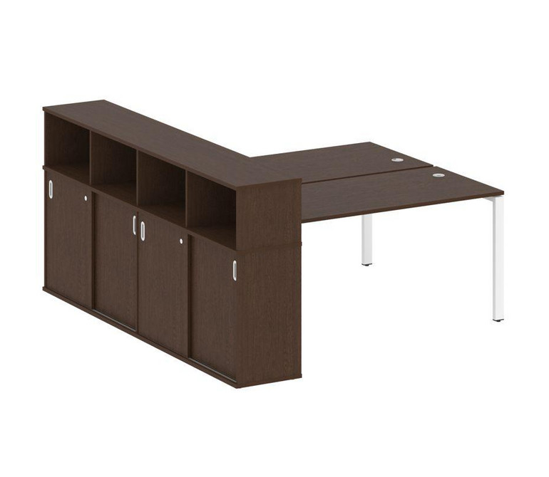 Metal System Рабочая станция с шкафом-купе на П-образном м/к БП.РС-СШК-4.4 Т Венге Цаво/Металл Белый
