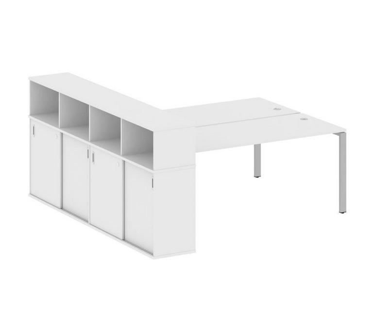 Metal System Рабочая станция с шкафом-купе на П-образном м/к БП.РС-СШК-4.5 Т Белый/Металл Серый 2210