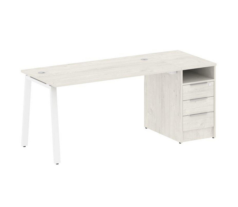 Metal System Рабочая станция с тумбой на А-образном м/к БА.РС-СТП-1.3 Дуб Наварра/Металл Белый 1812*