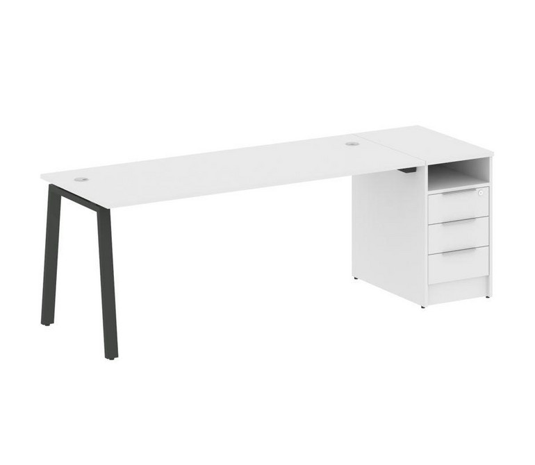 Metal System Рабочая станция с тумбой на А-образном м/к БА.РС-СТП-1.5 Белый/Металл Антрацит 2212*720