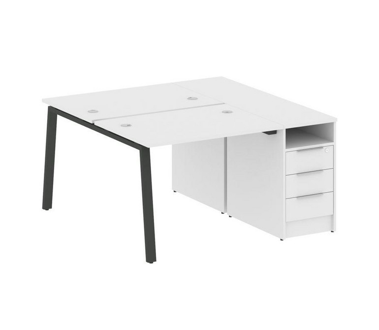 Metal System Рабочая станция с тумбой на А-образном м/к БА.РС-СТП-2.1 Белый/Металл Антрацит 1412*147
