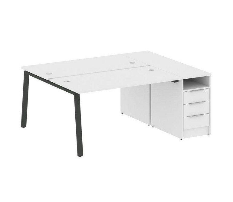 Metal System Рабочая станция с тумбой на А-образном м/к БА.РС-СТП-2.3 Белый/Металл Антрацит 1812*147