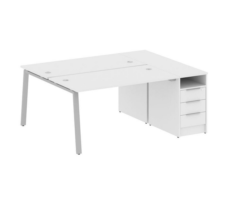 Metal System Рабочая станция с тумбой на А-образном м/к БА.РС-СТП-2.3 Белый/Металл Серый 1812*1475*7