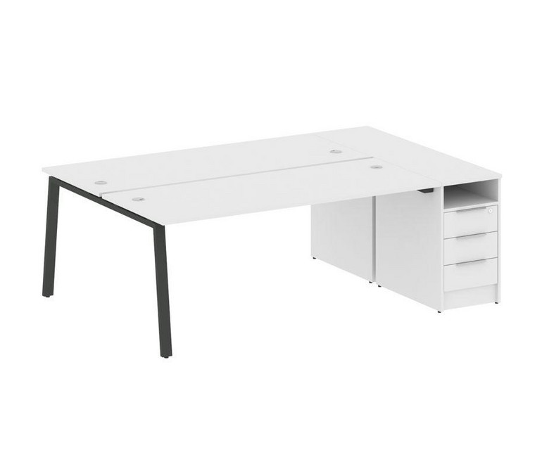 Metal System Рабочая станция с тумбой на А-образном м/к БА.РС-СТП-2.5 Белый/Металл Антрацит 2212*147