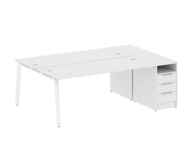 Metal System Рабочая станция с тумбой на А-образном м/к БА.РС-СТП-2.5 Белый/Металл Белый 2212*1475*7