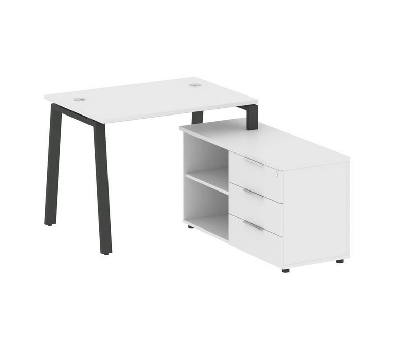 Metal System Рабочая станция с тумбой на А-образном м/к БА.РС-СТС-2.1 (R) Белый/Металл Антрацит 1100