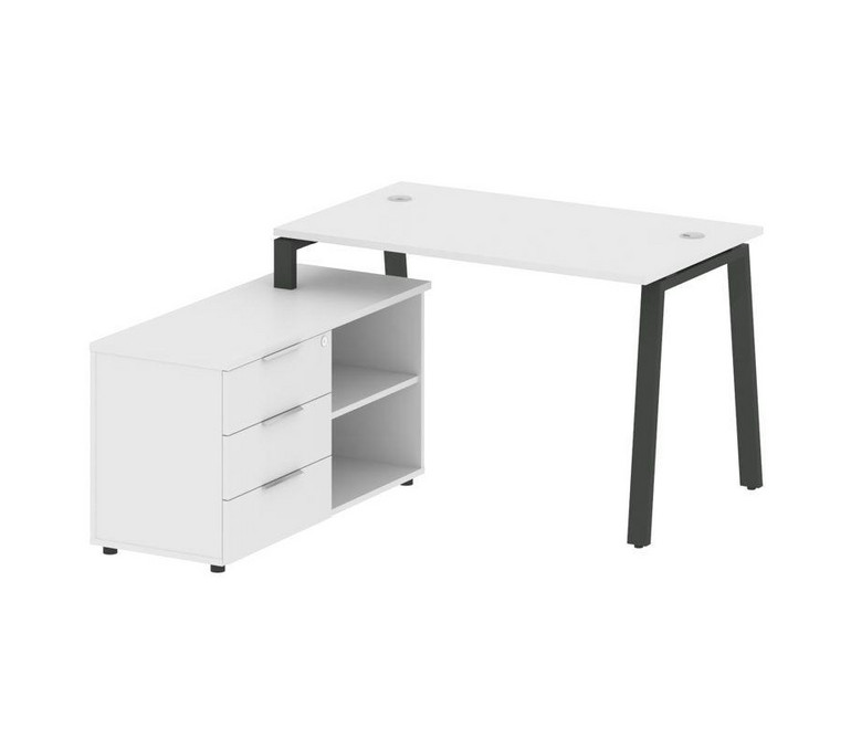 Metal System Рабочая станция с тумбой на А-образном м/к БА.РС-СТС-2.2 (L) Белый/Металл Антрацит 1300