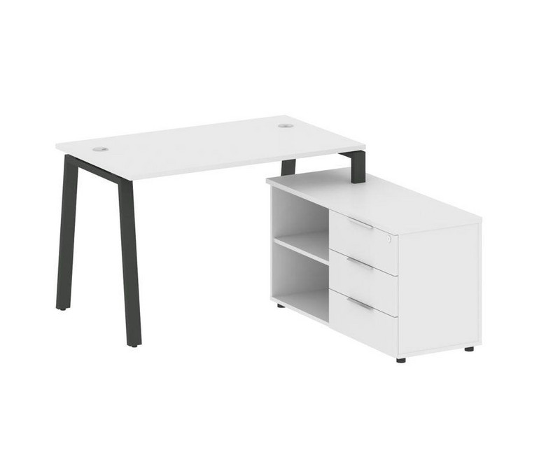 Metal System Рабочая станция с тумбой на А-образном м/к БА.РС-СТС-2.2 (R) Белый/Металл Антрацит 1300
