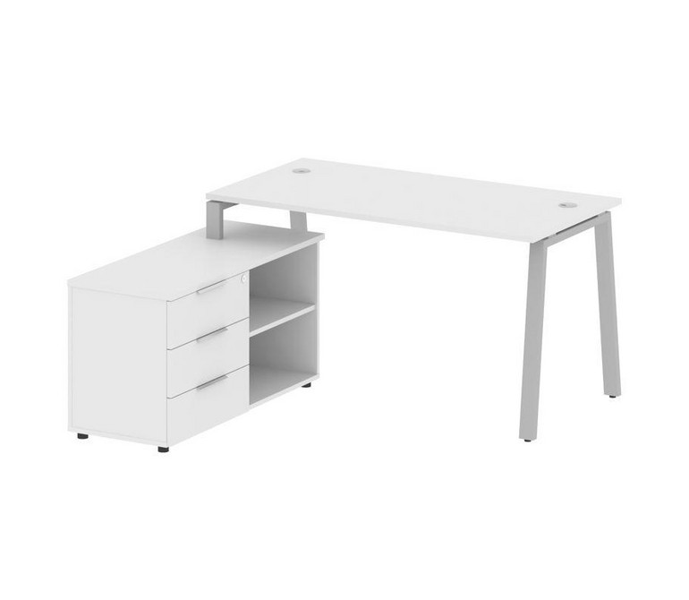 Metal System Рабочая станция с тумбой на А-образном м/к БА.РС-СТС-2.3 (L) Белый/Металл Серый 1500*15