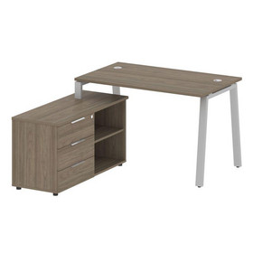 Metal System Рабочая станция с тумбой на А-образном м/к БА.РС-СТС-2.3 (L) Дуб Наварра/Металл Белый 1