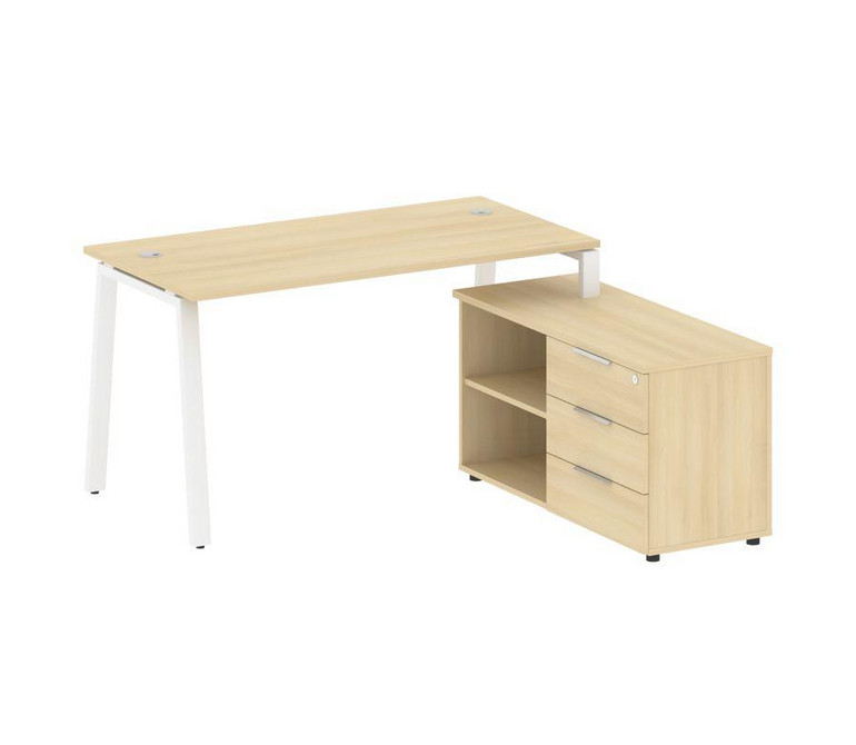 Metal System Рабочая станция с тумбой на А-образном м/к БА.РС-СТС-2.3 (R) Акация Лорка/Металл Белый