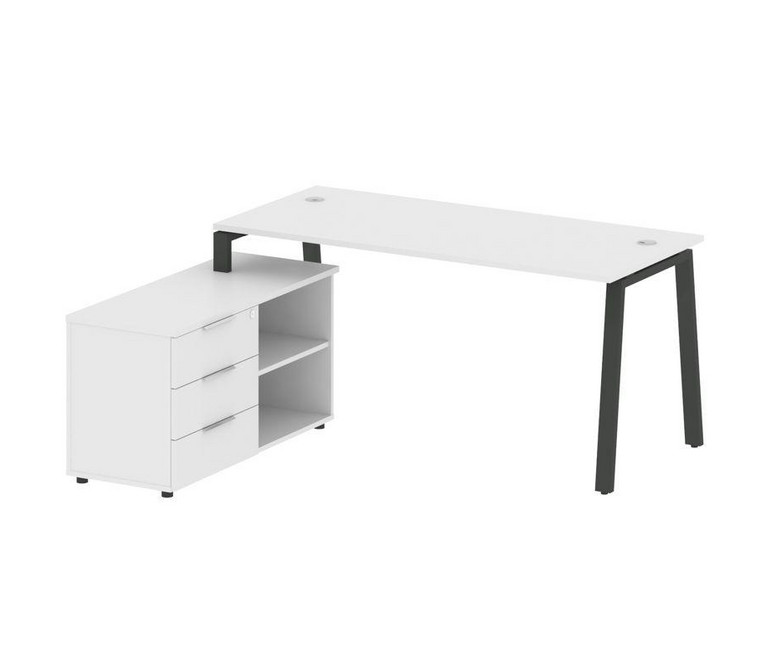 Metal System Рабочая станция с тумбой на А-образном м/к БА.РС-СТС-2.4 (L) Белый/Металл Антрацит 1700