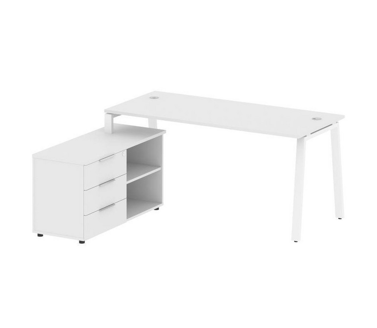 Metal System Рабочая станция с тумбой на А-образном м/к БА.РС-СТС-2.4 (L) Белый/Металл Белый 1700*15