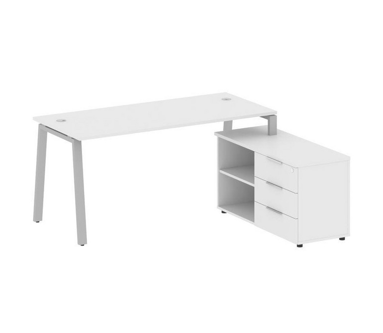 Metal System Рабочая станция с тумбой на А-образном м/к БА.РС-СТС-2.4 (R) Белый/Металл Серый 1700*15